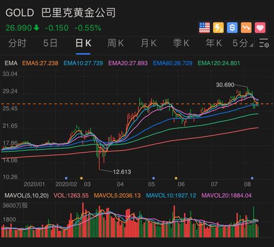 今年一季度,巴里克黄金公司的股价在20美元左右徘徊,甚至一度触及12美金的低点。而在二季度,该公司股价大幅上涨,股价一度涨至28美元,巴菲特的买入行为无异于“追高”。