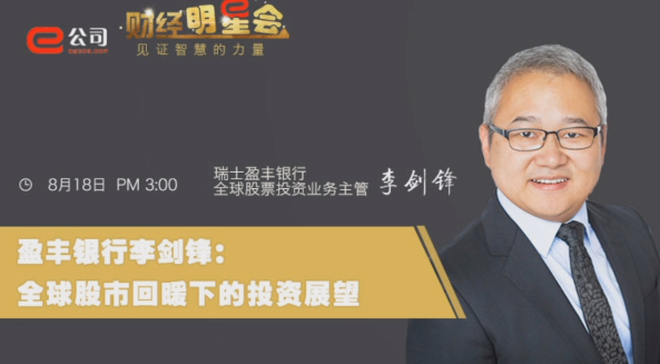 8月18日,e公司“财经明星会”邀请到瑞士盈丰银行全球股票投资业务主管李剑锋,他管理着创凯全球股票信念基金,该基金获得晨星(Morningstar)的五星评级,在晨星数据库中的3000余只全球基金中,该基金5年业绩排名前3%,三年业绩排名前2%。李剑锋毕业于清华大学经管学院本科,并取得剑桥大学、伦敦政治经济学院双硕士。他拥有15年海外市场从业经验,先后于高盛、瑞银伦敦分部任股票分析师。