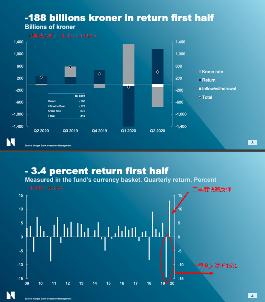 规模达1.1万亿美元的主权财富基金——挪威政府养老金,在2020年上半年亏损212.7亿美元,同比下跌幅度达到3.4%。