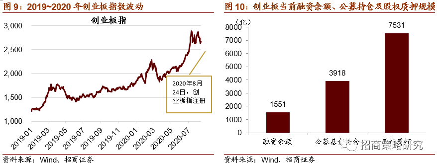 落地前不确定性压制投资者风险偏好,担忧的情绪释放后将回归常态化。我们近期与投资者沟通交流,部分投资者对20%涨跌停板带来的波动率上升和风险增加表示忧虑,同时也担心低风险偏好型资金因为新规则不配或减配创业板。