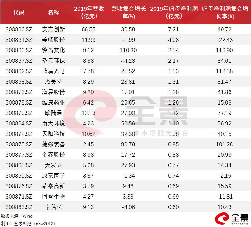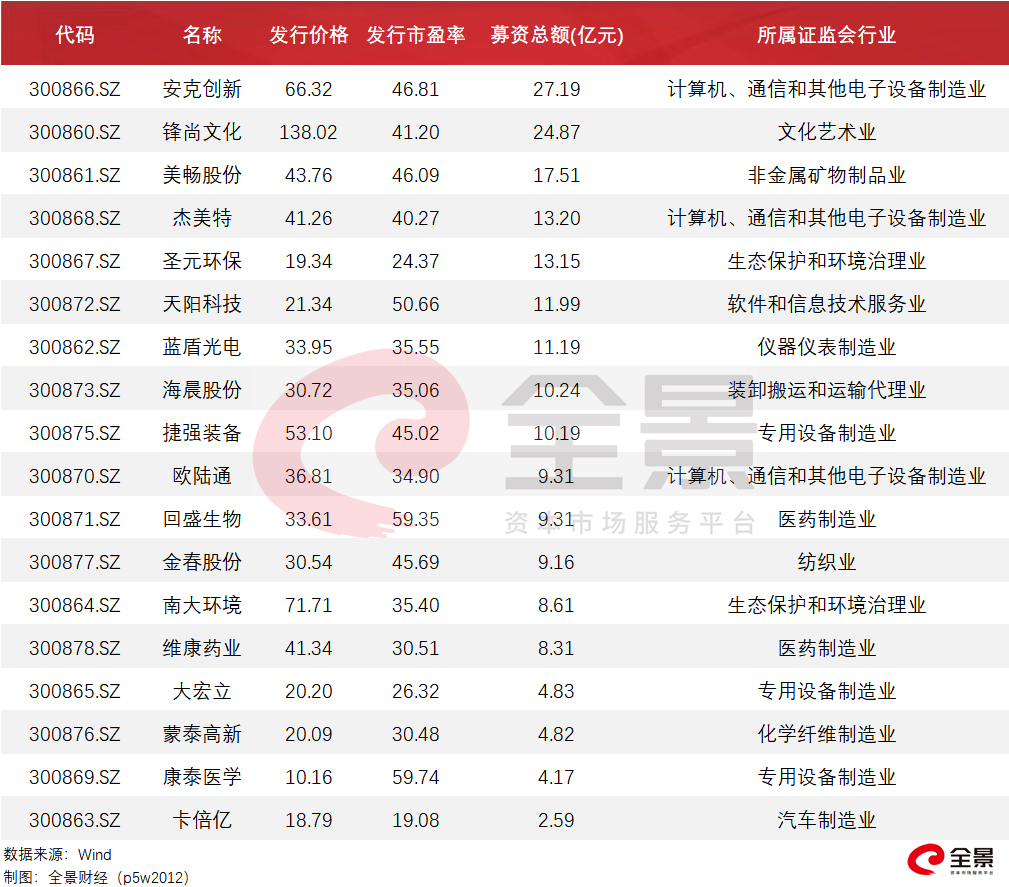 首批的这18家公司分别是安克创新、锋尚文化、美畅股份、杰美特、圣元环保、天阳科技、蓝盾光电、海晨股份、捷强装备、欧陆通、回盛生物、金春股份、南大环境、维康药业、大宏立、蒙泰高新、康泰医学、卡倍亿。据了解,募资总额超200亿元人民币。