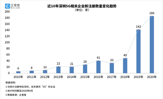 深圳5G先行,已成为全球5G第一城。企查查数据显示,全国范围内5G相关企业不足2000家,深圳5G相关企业最多,数量达近600家,占全国的34.89%。深圳市工业和信息化局数据显示,今年8月,深圳实现5G独立组网全覆盖,率先进入5G时代,据悉深圳5G基站已累计建成超4.6万个,基站密度第一。