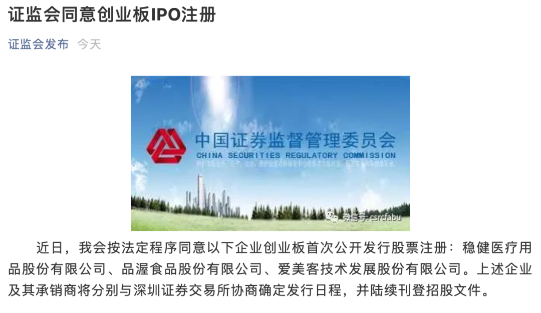 8月26日,证监会向3家IPO企业发放批文,其中就有稳健医疗。