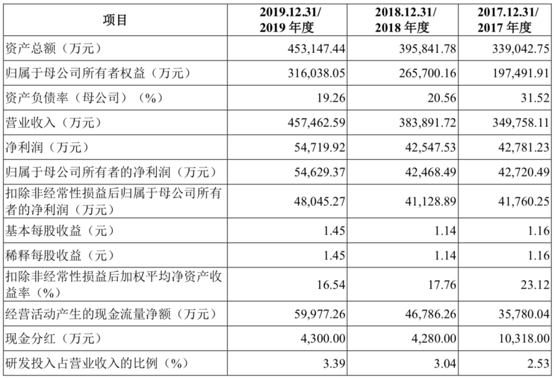 从盈利能力来看,在创业板公司里面稳健医疗收入规模较大。过去三年(2017-2019年)的营业收入依次为34.98亿、38.39亿、45.74亿。2017-2019年归母净利润分别为4.27亿、4.25亿、5.46亿。