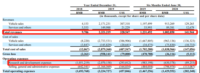 不过,小鹏汽车也还在亏损中。2019年全年净亏损36.9亿元;上半年净亏损7.95亿元。