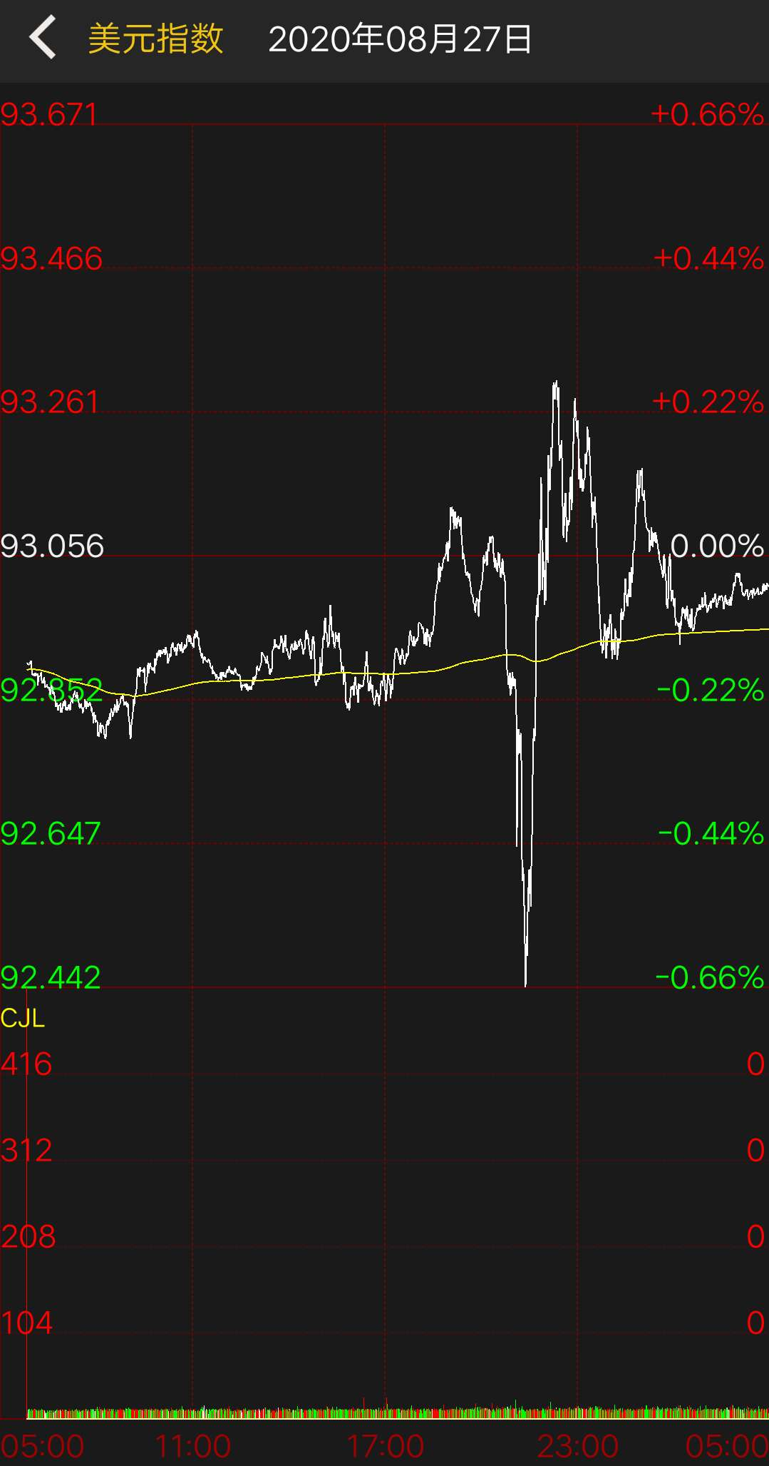 在鲍威尔讲话的影响下,国际金价再度上演“过山车”行情,现货黄金短线一度拉升近40美元/盎司,触及1976.65美元/盎司高点,但随后很快较日高回落近67美元/盎司,跌破1910美元/盎司。与此同时,美元指数短线下跌至92.41低点,但随后很快转而上涨,并刷新日高至93.34。分析人士表示,金价飙升后大幅回落的原因是鲍威尔释放的“鸽派”信号不及预期。