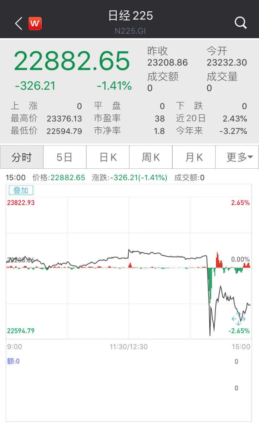 随着安倍晋三辞职的消息传开,东京股市市场出现大量抛售。日本股市短线跳水,日经225指数一度跌逾2%,随后震荡上行,截至收盘跌1.41%,报22882.65点。