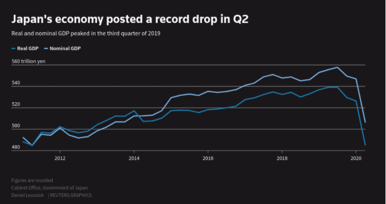 受紧急状态影响,日本内需大幅下滑。民众旅游、外出就餐及购物支出大幅减少。日本二季度个人消费比一季度下降8.2%,消费性开支的降幅达到了有记录以来的最大值。