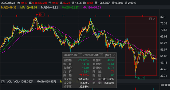 受制于业务表现,长实集团股价年内下跌明显,今年以来股价累计下跌22.62%。截至8月31日,长实集团最新总市值为1555亿港元,股价报42.1港元/股。