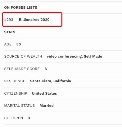 在2020福布斯富豪排行榜上,袁征的排名仅为293位。