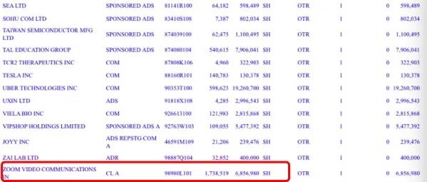 今年二季度,高瓴对Zoom继续加仓。截至二季度末,高瓴对Zoom的持股从一季度末的619.4万股增加至685.7万股,增持幅度为10.7%。