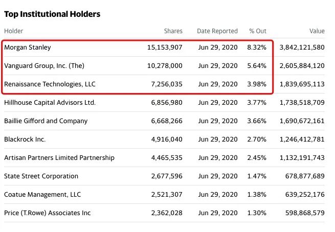 除高瓴外,持有Zoom股份超过700万股的大摩、先锋集团、文艺复兴科技公司也纷纷大赚。