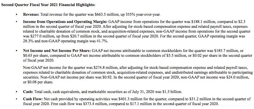 现金流方面,第二季度Zoom获得的自由现金流为3.734亿美元,与去年同期的1710万美元相比大增118%。