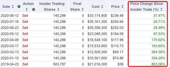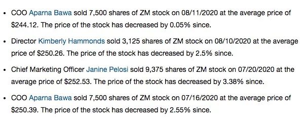 而袁征的频繁套现并没有影响Zoom的股价走势,其套现后Zoom股价继续上涨,可谓是CEO也“卖飞”了。