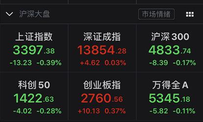 早盘开盘,上证指数还高开0.29%,然后一路走低,一江春水东南流,盘中一度跌1%,而后上午收盘前V起,最终收跌0.39%。两市个股跌多涨少,短线赚钱效应聚焦在创业板,逾30股涨超10%,超10股涨停。