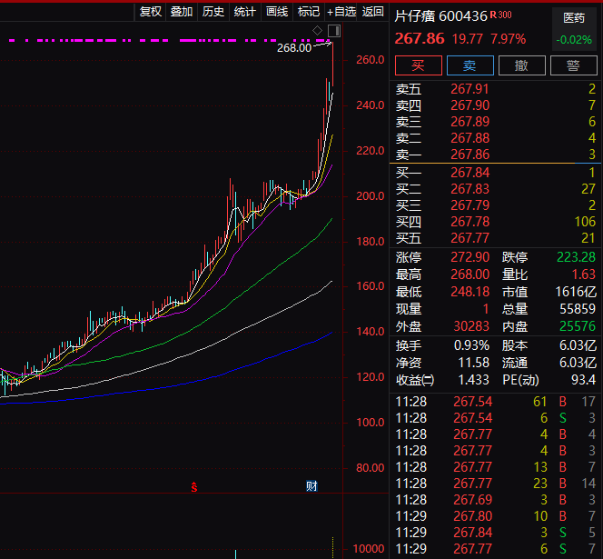 中药股一哥易主:片仔癀大涨近8%市值超白药