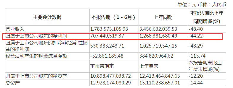 公司日前发布的中报显示,2020年上半年,养元饮品实现营业收入约为17.84亿元,同比下滑48.40%;归属于上市公司股东的净利润约为7.07亿元,同比下滑44.22%;扣除非经常性损益的净利润约为5.3亿元,同比下滑48.29%。