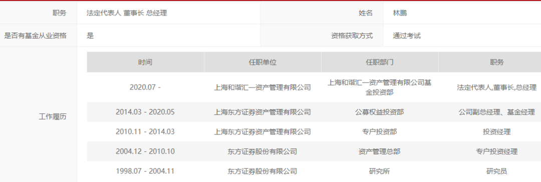 今年8月27日,基金业协会信息也显示,由原东方红资管副总经理、公募权益投资部总经理林鹏“奔私”创立的上海和谐汇一资产管理有限公司,完成私募证券投资基金管理人登记,这意味着林鹏将开启创业新征程,基金君了解到,他不久将发行新产品。