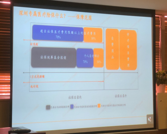 理赔顺序上,社保报销为第一层;社保不能报销的部分,由深圳市重特大疾病补充医疗保险在封顶线和起付线的基础上报销70%,此为第二层;专属医疗险属于第三层次的保障,保险前两层次没有覆盖的、超出社保限额的个人自付的30%,以及一些社保目录外的药品。