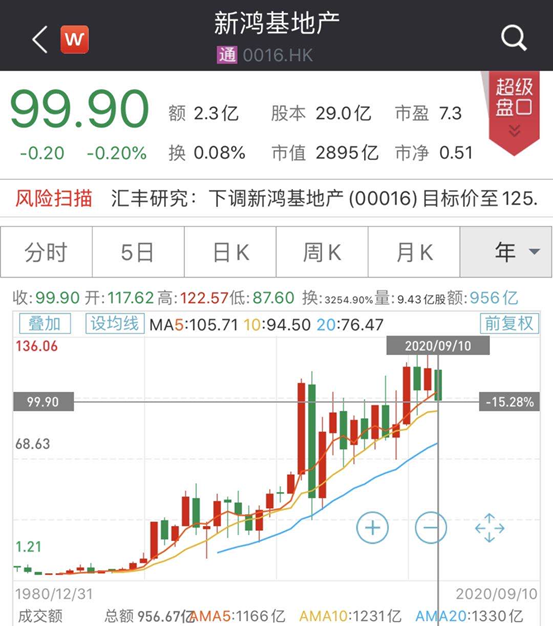今年以来,新鸿基地产股价跌15%,最新市值2895亿港元。