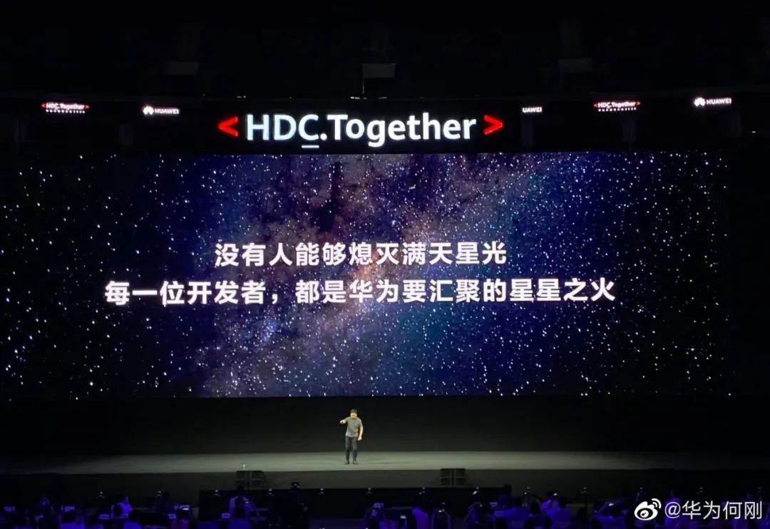 在演讲的最后一分钟,余承东表示“没有人能够熄灭满天星光,每一位开发者,都是华为要汇聚的星星之火”。