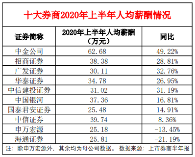 值得注意的是,中金公司今年涨薪幅度最大,上半年人均薪酬同比增加20.67万元,增幅近50%。