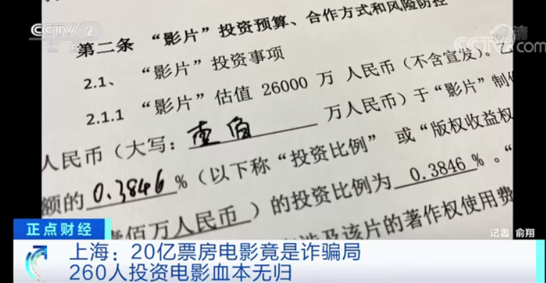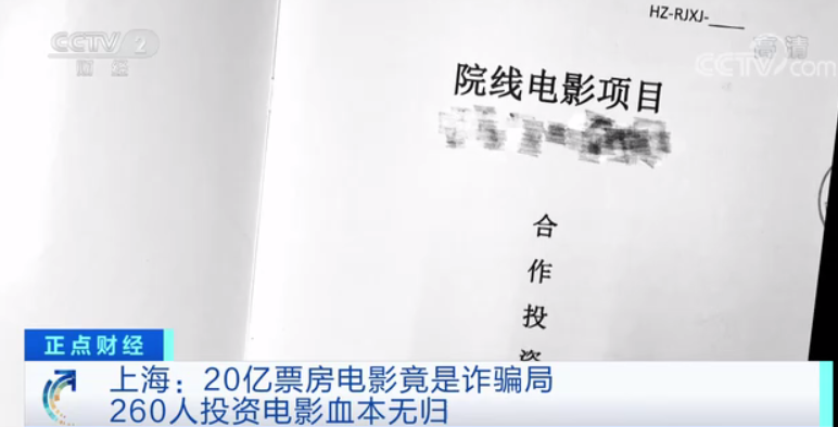 今年3月,上海市民何先生向警方报案称,2019年初,他在网上结识了一名影视投资中介公司的员工,对方向他推销了一部投资成本超过2.6亿元,预期票房可达20亿元的电影。