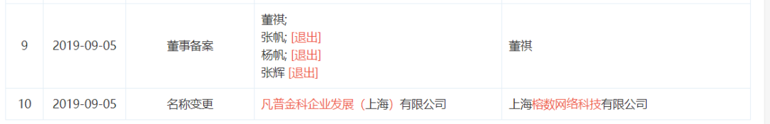2019年8月,凡普金科合肥分公司疑因贷后催收问题被当地警方进行入场检查;9月份,爱钱进发生工商登记变更,名称变为上海榕树网络科技有限公司。“天才少年”创始人杨帆、张帆等三人退出董事,仅剩董祺一人。