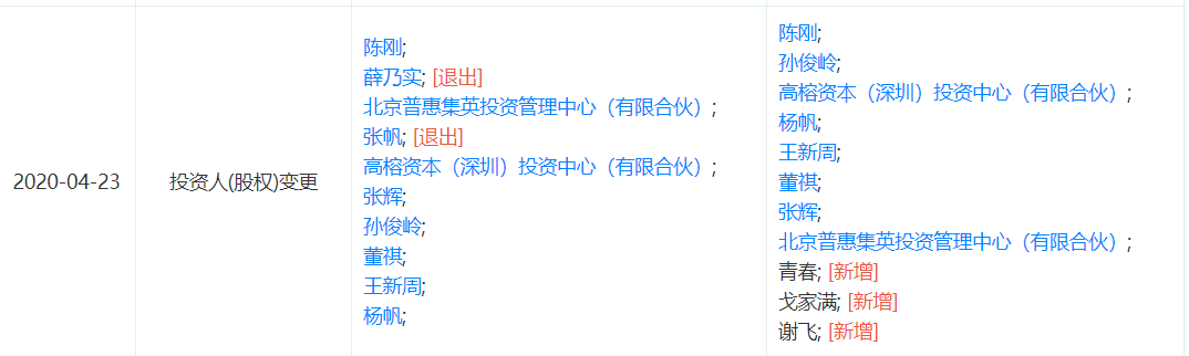 到今年4月,爱钱进发生股权变更,原来的联合创始人之一张帆退出,原股东也退出,新增青春等三名股东。