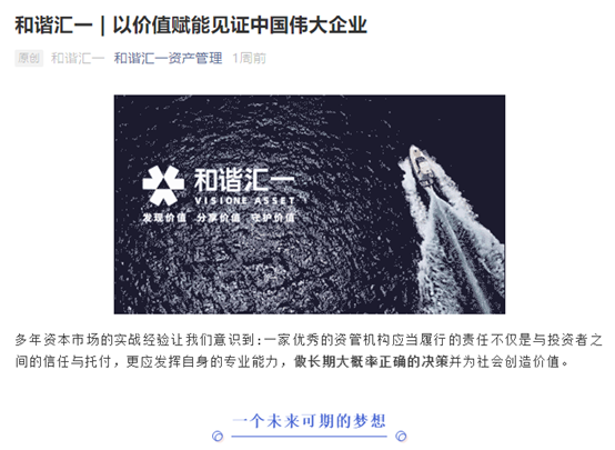 前不久,林鹏执掌的和谐汇一资产发布微信文章《以价值赋能见证中国伟大企业》。