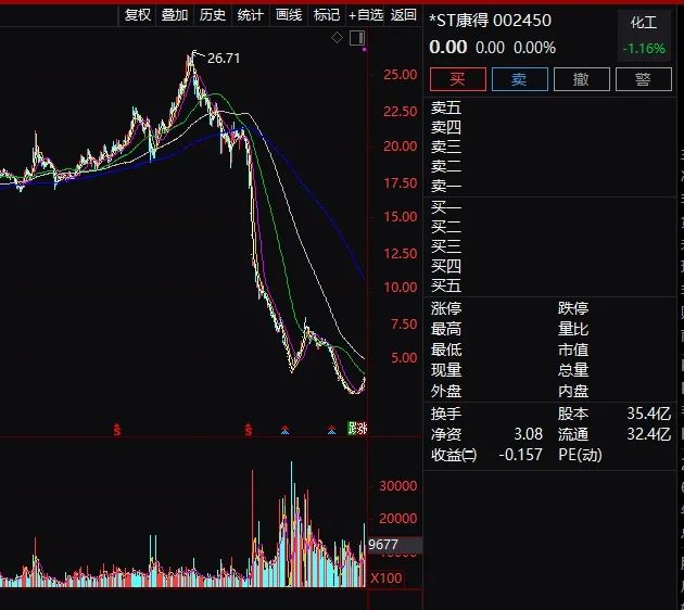 *ST康得最新的收盘价为3.52元,总市值为125亿元。若被强制退市,如果退市整理期30个跌停,将跌至0.15元,市值将只剩下5.31亿元。