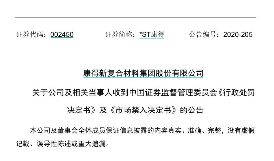 *ST康得9月28日晚间公告,9月27日,康得新(*ST康得)及相关当事人收到中国证监会下发的《行政处罚决定书》)及《市场禁入决定书》。