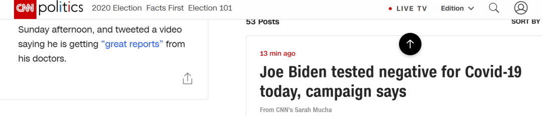 CNN:拜登竞选团队说,拜登4日检测结果为阴性