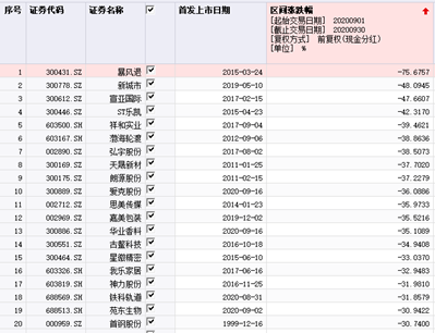 截至9月30日,在跌幅最大的前十名中大部分为创业板个股,其中暴风退成了“熊”头,单月跌幅超过75%。此外,从前十大熊股来看,大多为创业板公司(7家),及前期涨幅很大的公司。