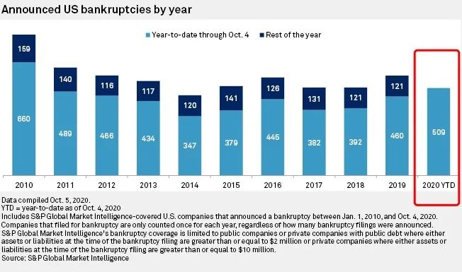 美国年内500家大企业破产