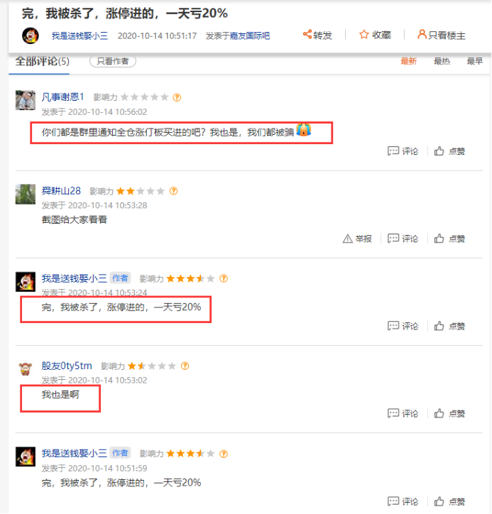 果不其然,很快就有多个网友在股吧中反映,自己被“杀”了,并贴出微信群截图。