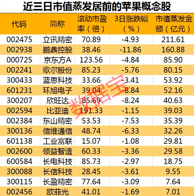 A股苹果概念股近三个交易日蒸发近千亿