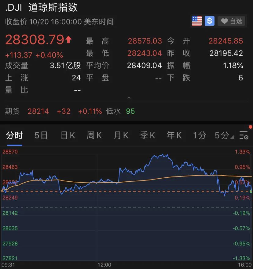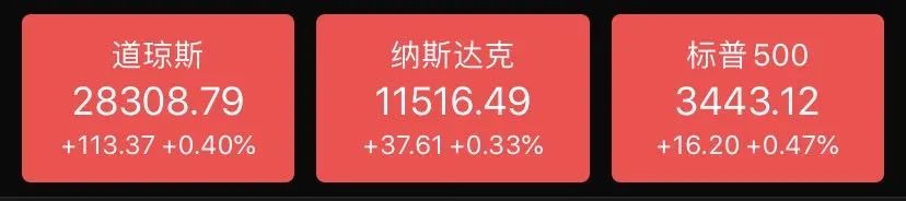 纳指和标普500也收涨,但涨幅均不足0.5%。