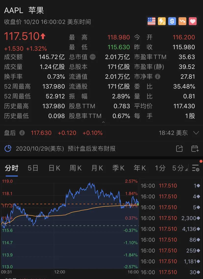 苹果涨1.32%、亚马逊涨0.31%、Facebook涨2.36%、微软涨0.20%、高通跌0.09%、AMD跌0.54%、奈飞跌1%。