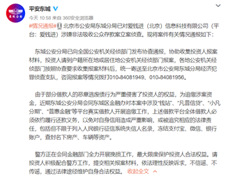 今年9月,北京市公安局东城分局对爱钱进(北京)信息科技有限公司(平台:爱钱进)涉嫌非法吸收公众存款案立案侦查。