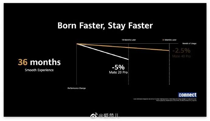 余承东表示,现在的华为手机已经可以实现长达36个月的流畅使用:「天生更快,一生更快。」