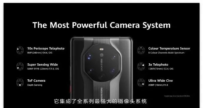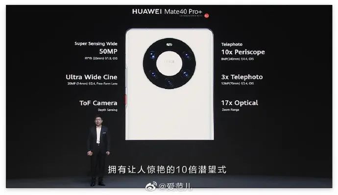 镜头则是华为在此次Mate40系列上又一个大的升级。其中Mate40 Pro+拥有五颗镜头,包括了全新的5000万像素的主镜头,10X潜望式光学变焦的超长焦镜头,2000万像素的超广角镜头和3X的长焦镜头以及一颗ToF镜头。