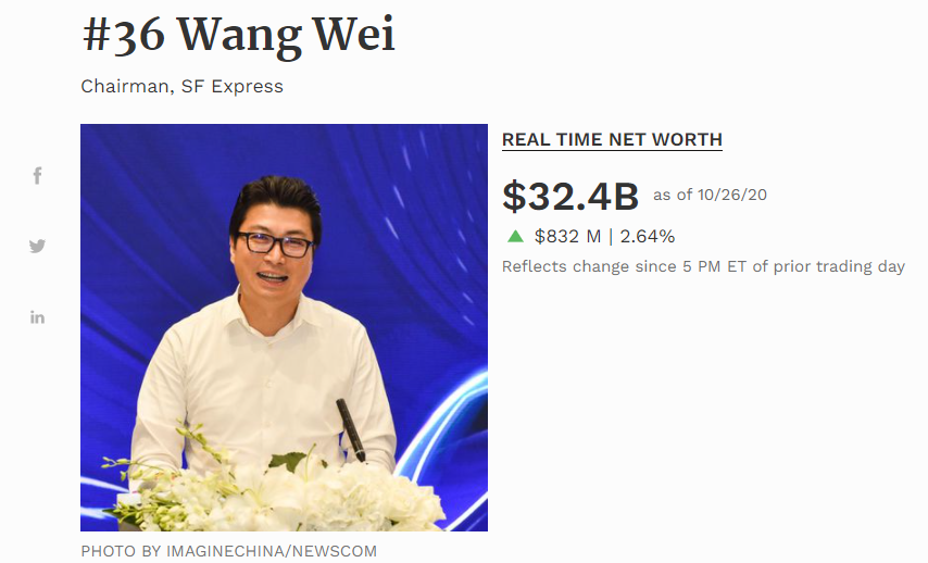 而福布斯全球实时富豪榜,王卫排名位于李嘉诚之上,两者相差约238亿人民币。