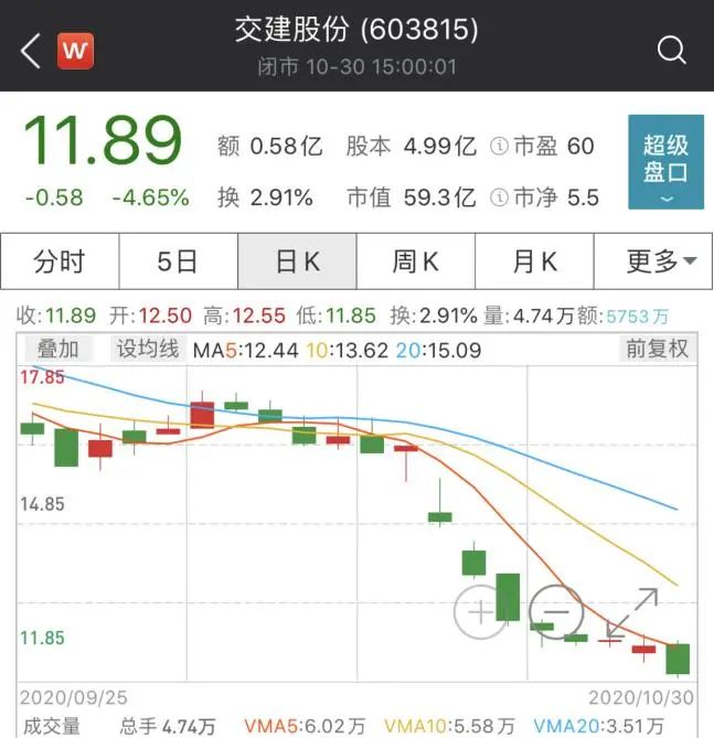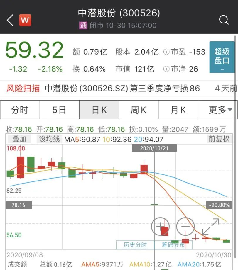 10月16日,公司公告披露,公司监事宋清波于2020年10月13日至2020年10月14日期间有买卖公司股票行为,以上买入又卖出公司股票行为构成短线交易、敏感期买卖股票等违规交易。之后,股价又是一波下跌。
