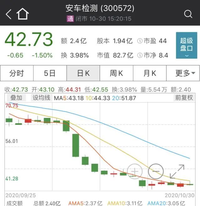 排名跌幅第五的是安车检测,10月跌幅33.44%,