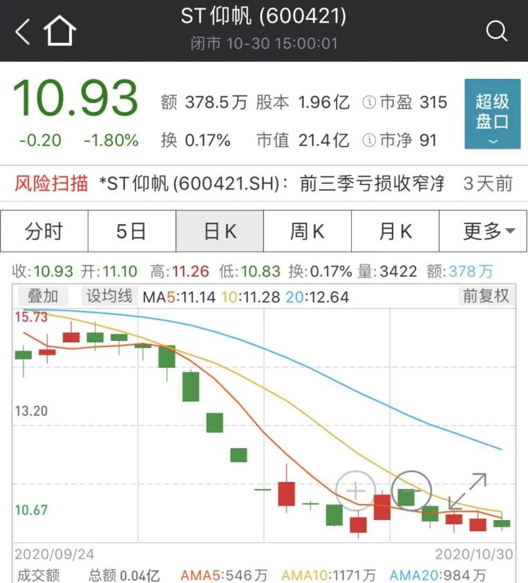 ST仰帆,10月跌幅27.13%。该公司5月份刚摘除*ST帽子,8月该股曾经大涨30%。
