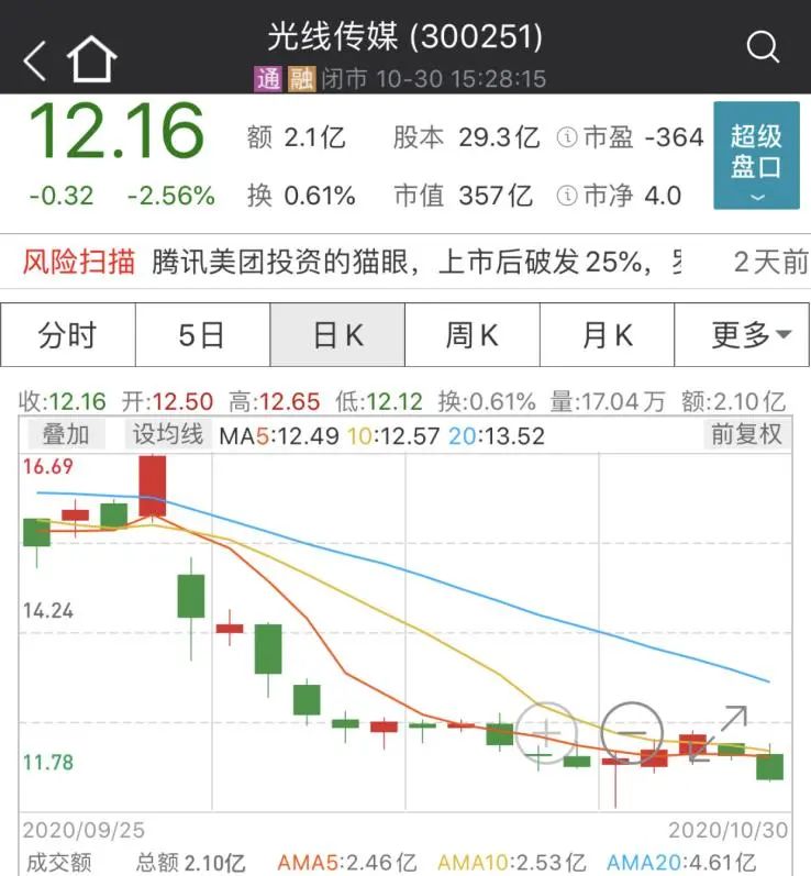 光线传媒的下跌和前期上涨幅度较大有关,从去年6月最低6.46元开始,到今年9月最高18.04元,股价接近上涨了3倍。