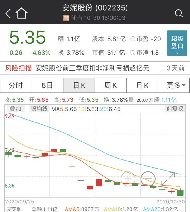 从9月开始,安妮股份股价就出现了大跌,9月跌幅达到30%。