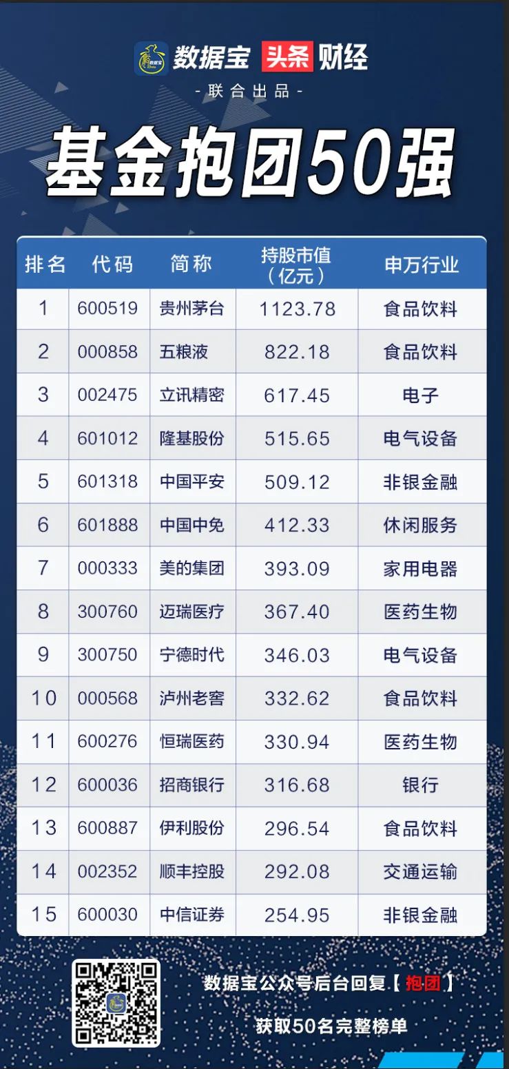 “基金抱团50强”持股市值高达1.2万亿,占基金总持仓的50%。