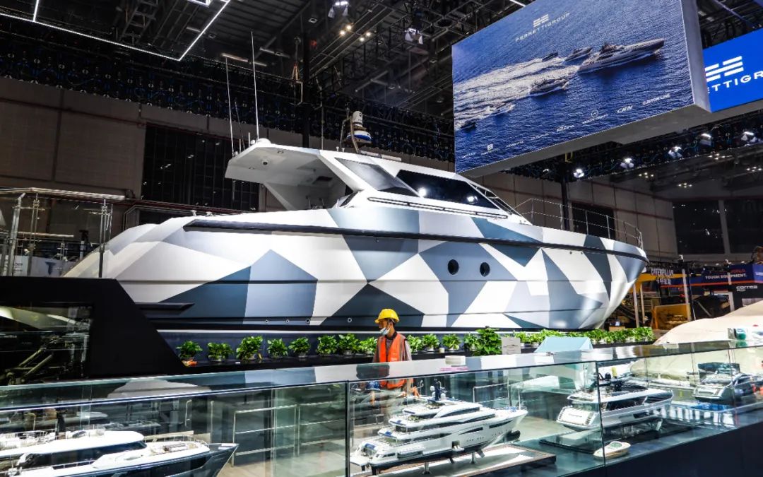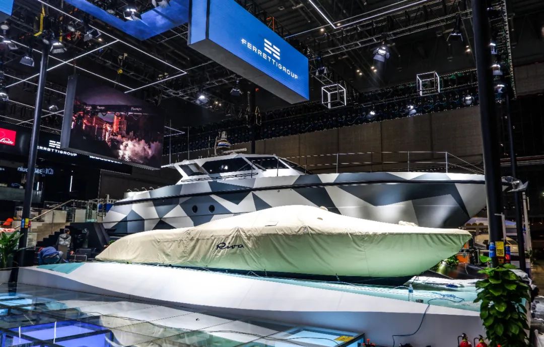 本届进博会最大的展品,RIVA(丽娃)是世界上首屈一指的顶级豪华游艇品牌。这艘游艇艇长10.06米,宽2.8米,艇重5.25吨,价值600余万元人民币。